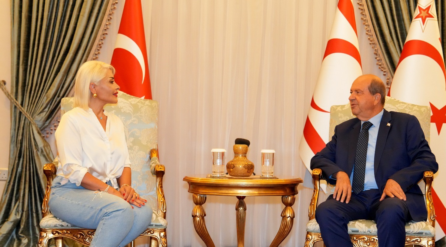 Cumhurbaşkanı Ersin Tatar, sanatçı Ayşegül Zaim’i kabul etti. Cumhurbaşkanlığı’ndan yapılan açıklamaya göre, Cumhurbaşkanı Tatar, sanat alanında yeni çalışmalara imza atan…