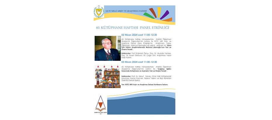 “60. Kütüphane Haftası” nedeniyle Milli Arşiv ve Araştırma Dairesi tarafından panel düzenlenecek ve KKTC Milli Arşiv ve Araştırma Dairesi Kıbrıs…