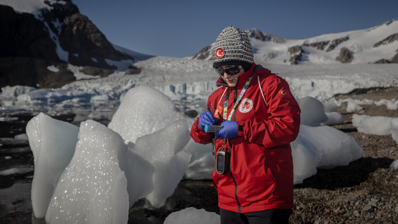 Cumhurbaşkanlığı himayesinde, Sanayi ve Teknoloji Bakanlığı uhdesinde, TÜBİTAK MAM Kutup Araştırmaları Enstitüsü koordinasyonunda düzenlenen sefer kapsamında çalışmaların yürütüldüğü Beyaz…